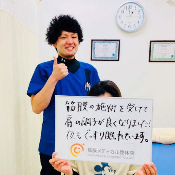 「筋膜の施術の効果を実感してから、寝れるようになりました!」 Q.どのような症状にお困りでどのように対処されてきましたか? A.不眠症の症状で困っており、半年ほど続いている状態でした。寝つきが悪いだけでなく、夜に目が覚めることや寝起きのひどいダルさにも悩まされていたました。