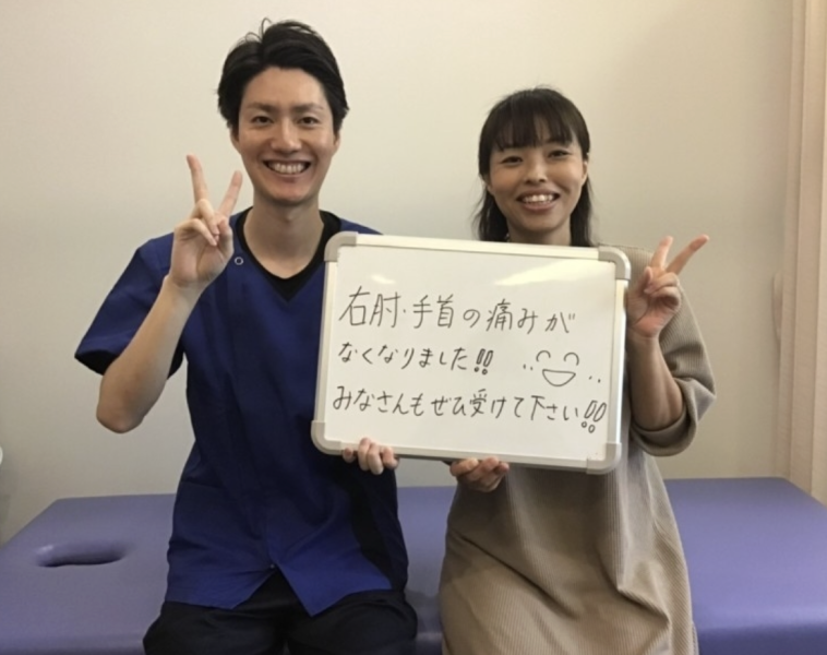 Q.どのような症状でお困りでどのように対処されてきましたか? A.右肘、手首の痛みがあり、整形外科を受け、テニス肘と言われました。痛みが増えないよう、日常生活ではなるべく右手を使用しないようにしていました。 Q.当院に来る前にどのような不安や期待がありましたか? Q.当院の筋膜の施術を受けてみて感想や現在の症状はいかがですか? Q.他の医療機関や施術院と比べるといかがですか? Q.私の説明はわかりやすかったですか? Q.当院をどのよう方に紹介したいですか? Q.その他の当院へのメッセージをお願いいたします。 ※個人の感想です。効果には個人差があります。 |