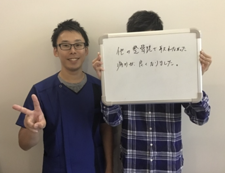 「腕の痺れが良くなりました!!」Q.どのようなご症状で当院をご利用されましたか? A.右腕の痺れがひどくて来ました! Q.ご症状によりどのようなことでお悩みでしたか? A.仕事中や食事中にペンを持ったり箸を持つことが大変でした。 Q.当院に通っていただきどのようなところにご満足いただけましたでしょうか? A.痺れがかなり良くなって、仕事に支障もなくなってよかったです! Q.最後に当院の施術を受けてみて感想や現在のご症状はいかがでしょうか? A.今は施術を受けて痺れもなくなり、身体を軽く感じれるようになりました! ※個人の感想です。効果には個人差があります。 |