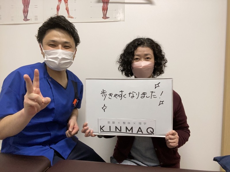 2.3年前から歩きにくさを感じていて身体の歪みがあるのではないかと思っていました。それから次第に股関節の痛みや、脚の長さの違いがあったり、頭痛や吐き気から仕事を休む日もありました。病院では問題が見つからずに困っていましたが、職場近くにKINMAQ整体院さんを見つけて施術をお願いしました。 担当の先生からは、筋膜は全身タイツのような考えで全身繋がっていることを教えて頂き、自分でも納得して施術を受けることが出来ました。今では全身の施術をして頂き、すごく歩きやすくなり頭痛や吐き気の症状もなく過ごす事が出来るようになりました。 ありがとうございました!